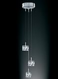 Ice Cube 3 Light Pendant With Concave Ice Glass 3X20 Watt Halogen LampsA modern halogen ceiling lights fitted with moulded concave clear ice cube glass and satin silver finish.
